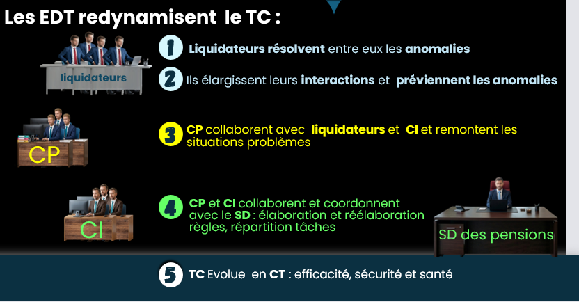 Organizational change, through the lens of work activity and the active participation of employees, is possible in Algeria. Work discussion forums (EDTs), offered by the organization to the National Pension Fund (CNR) as a means of maneuver, focusing on production anomalies and their determinants, have facilitated individual and collective learning and improved service quality and employee performance.