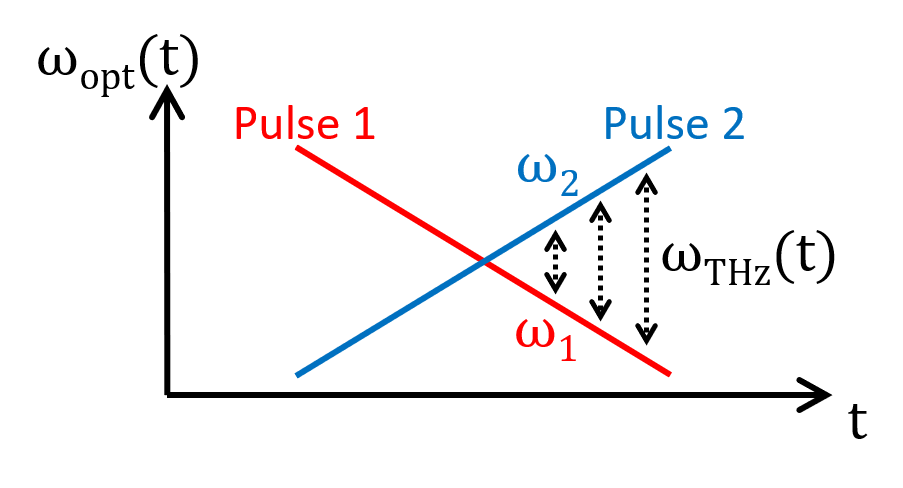 The terahertz (THz) range corresponds to frequencies located between the microwave and optical domains. This intermediate nature gives THz waves unique physical properties, with strong potential for telecommunications and non-destructive imaging. One of the most common THz sources is the photo-conductive antenna, an electro-optical component that converts optical excitation into a THz wave. The research presented here proposes a new optical excitation method based on a process known as photomixing, which reduces the risk of damage along the optical path upstream of the antenna, while providing greater control over the characteristics of the emitted THz wave. These advances are expected to pave the way for improved integration of photo-conductive antennas and for the emission of higher THz power.